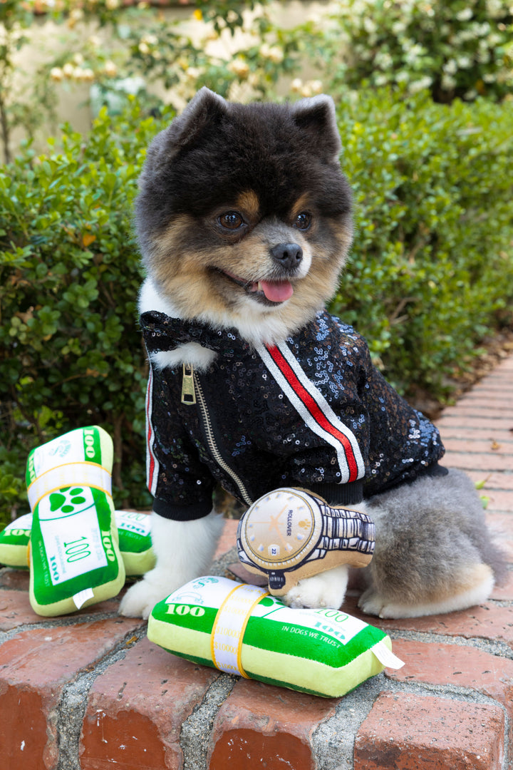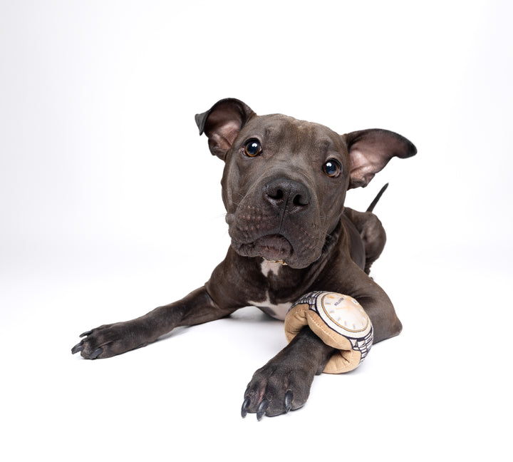 Let your pup stunt in style with the Rollover Watch – the ultimate gold plush for furry fashionistas who love to flex. With its open ring design, it’s perfect for chewing, rolling, fetching, and squeaking in serious style. Whether they're at the park or the paw-ffice, this playful parody lets them flaunt their “rollie” like a true icon.
